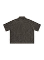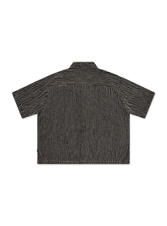 The Crop Shirt. Specialty textured fabric, resort collar and boxy fit. Length is shorter through body.
