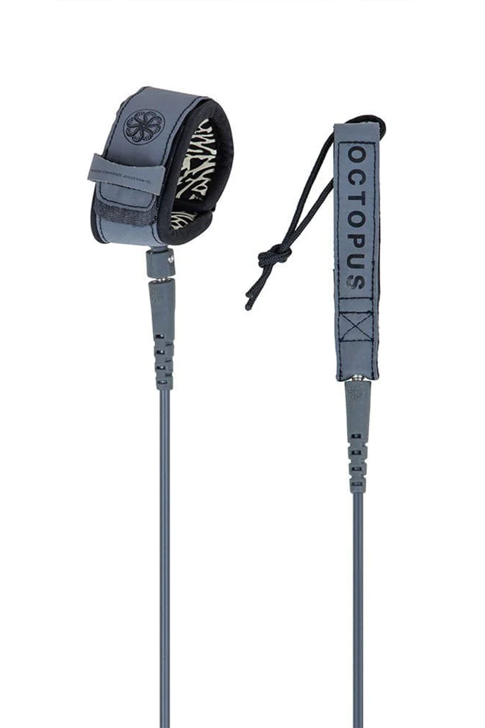 Mission Control Surf Leashes feature an updated cord mold for better flex and durability. Death Metal Contrast silicone gel print on inner cuff for increased ankle grippage. Updated durable hypalon out cuff shell and rail saver along with a new contoured easy-grip pull tab.