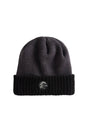 - Ribbed two tone knit cuff beanie with woven label
