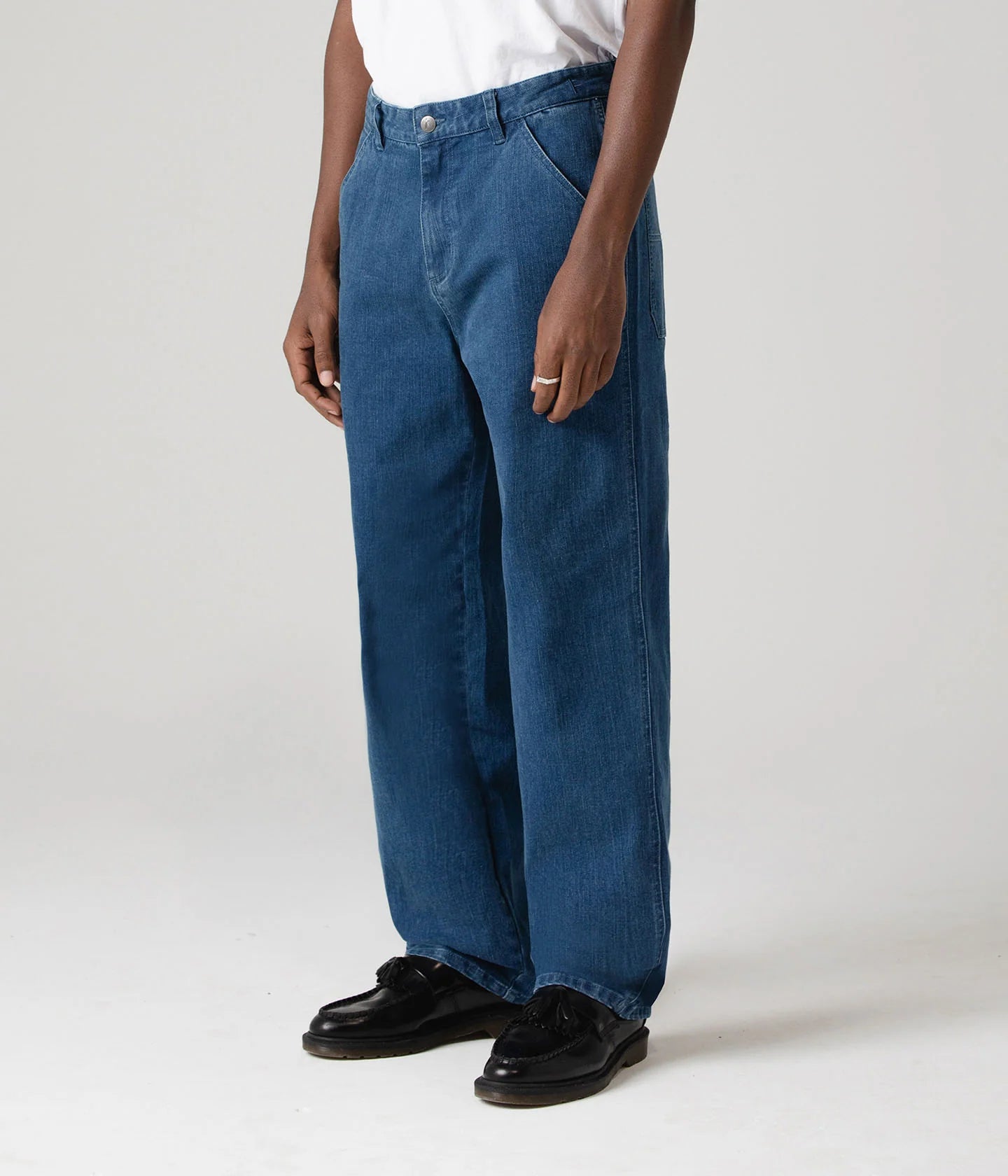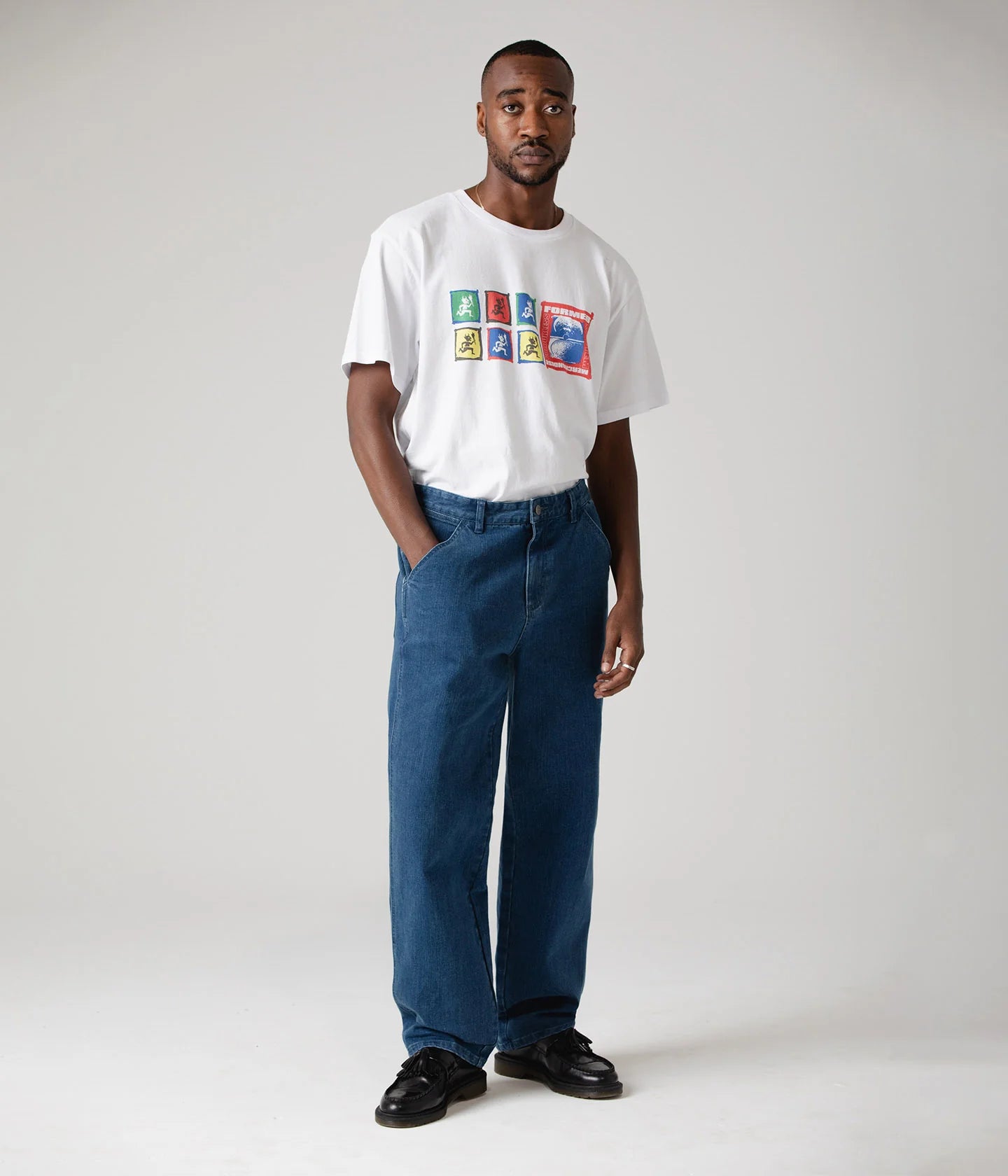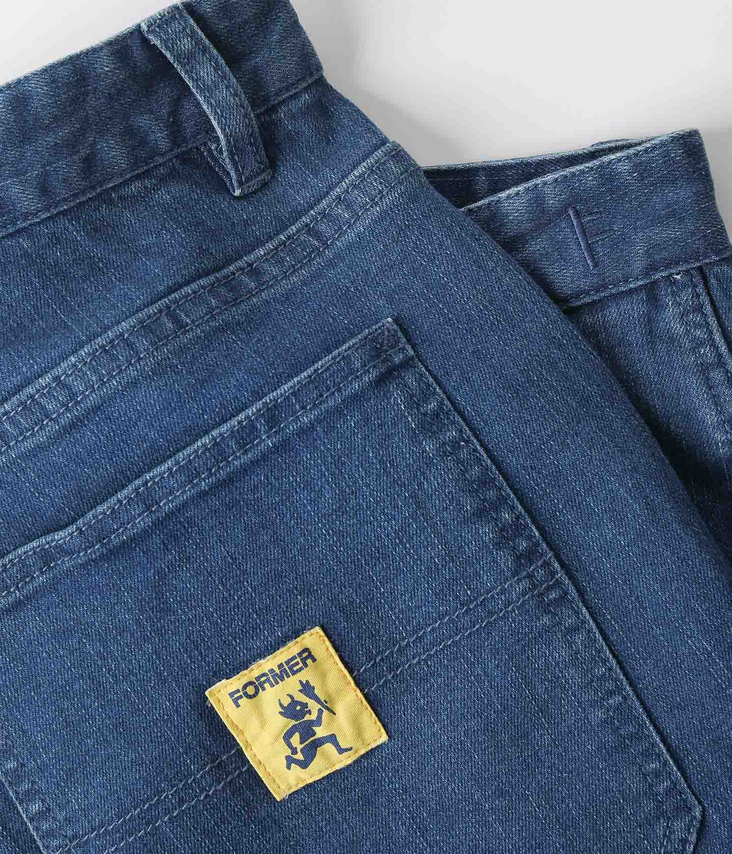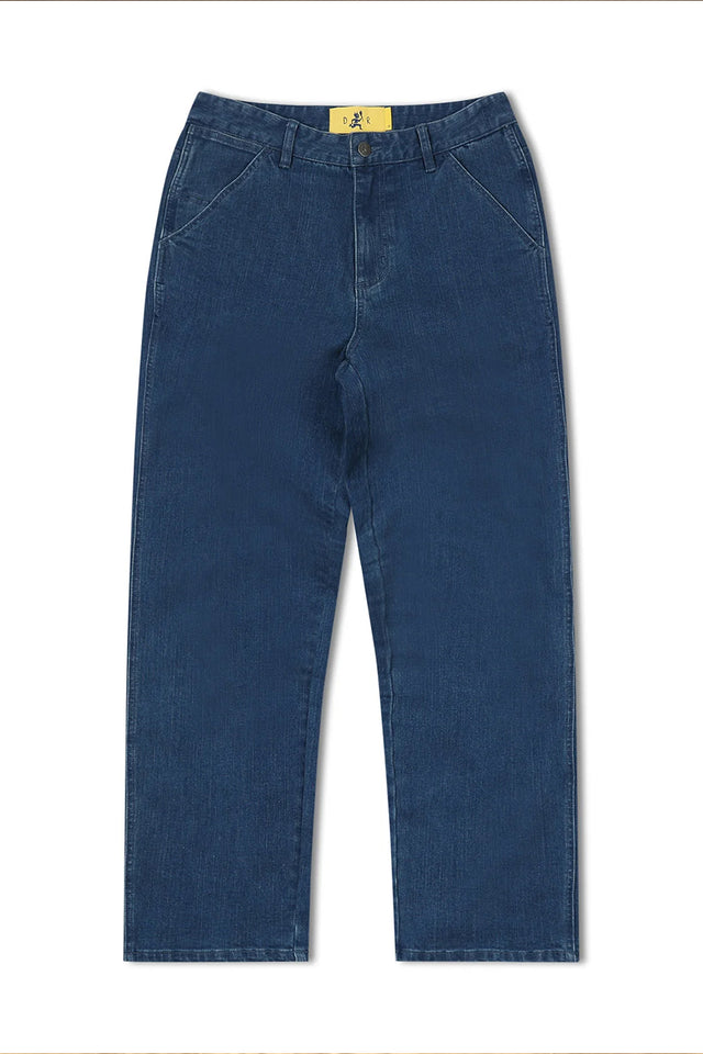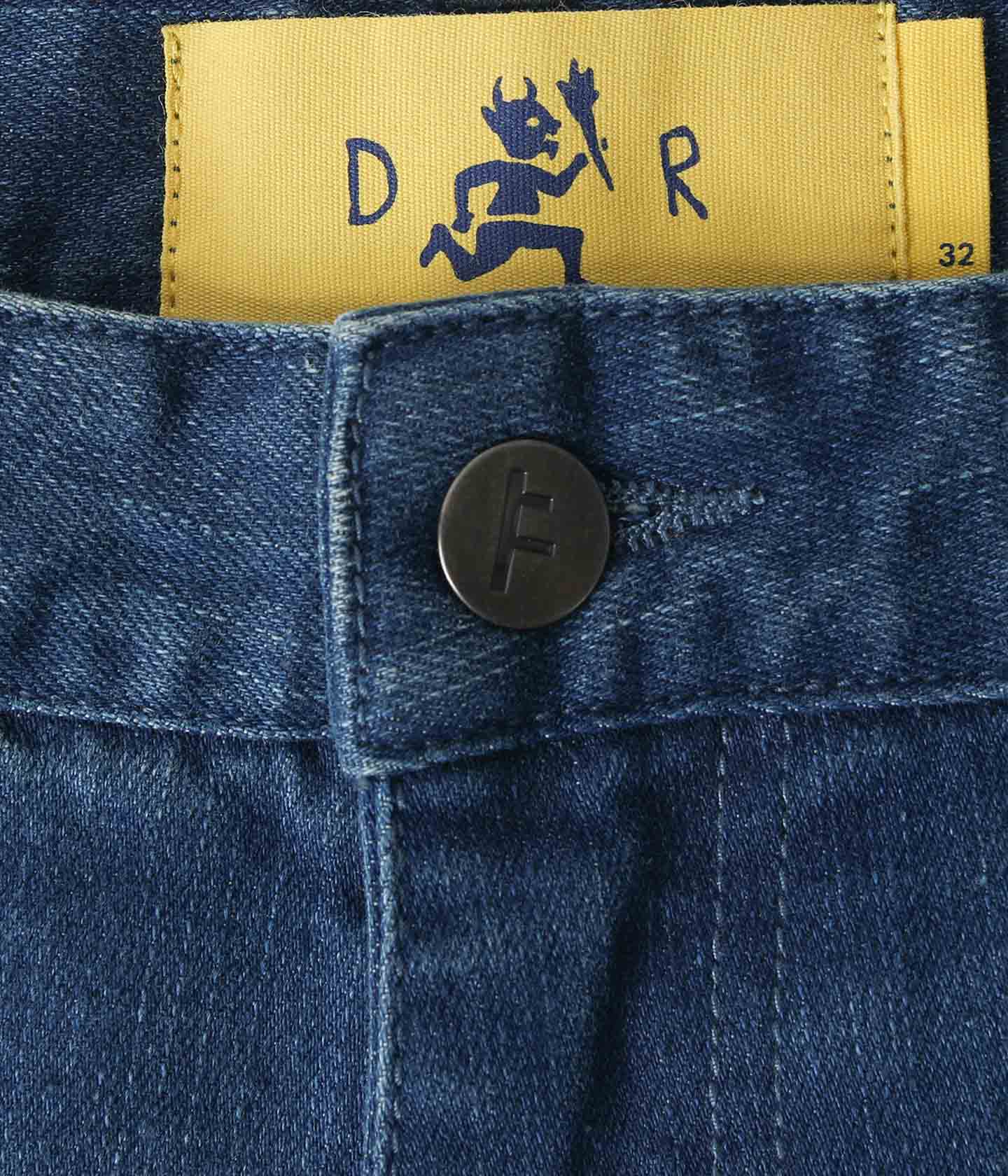 Designed and worn by dane reynolds, the reynolds distend jean is crafted from premium stonewashed blue denim. These durable, heavyweight, workwear inspired pants come in a baggy fit with a wide leg with a 18 1/2" leg opening. Featuring signature dr custom woven labels, branded franchise f metal hardware, crux leather patch, and signature franchise f embroidery.