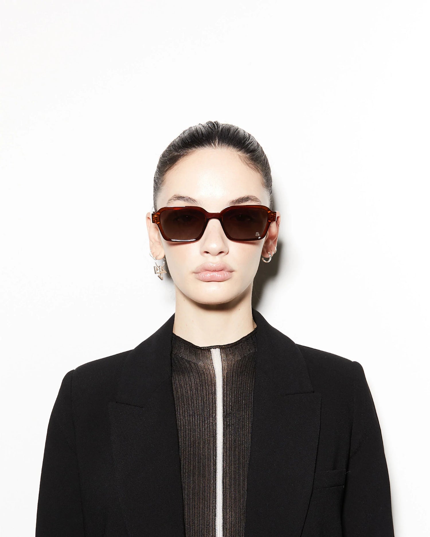 Clean lines in a statement squared off silhouette. custom cinnamon inspired new spice colourway with gradient lenses.