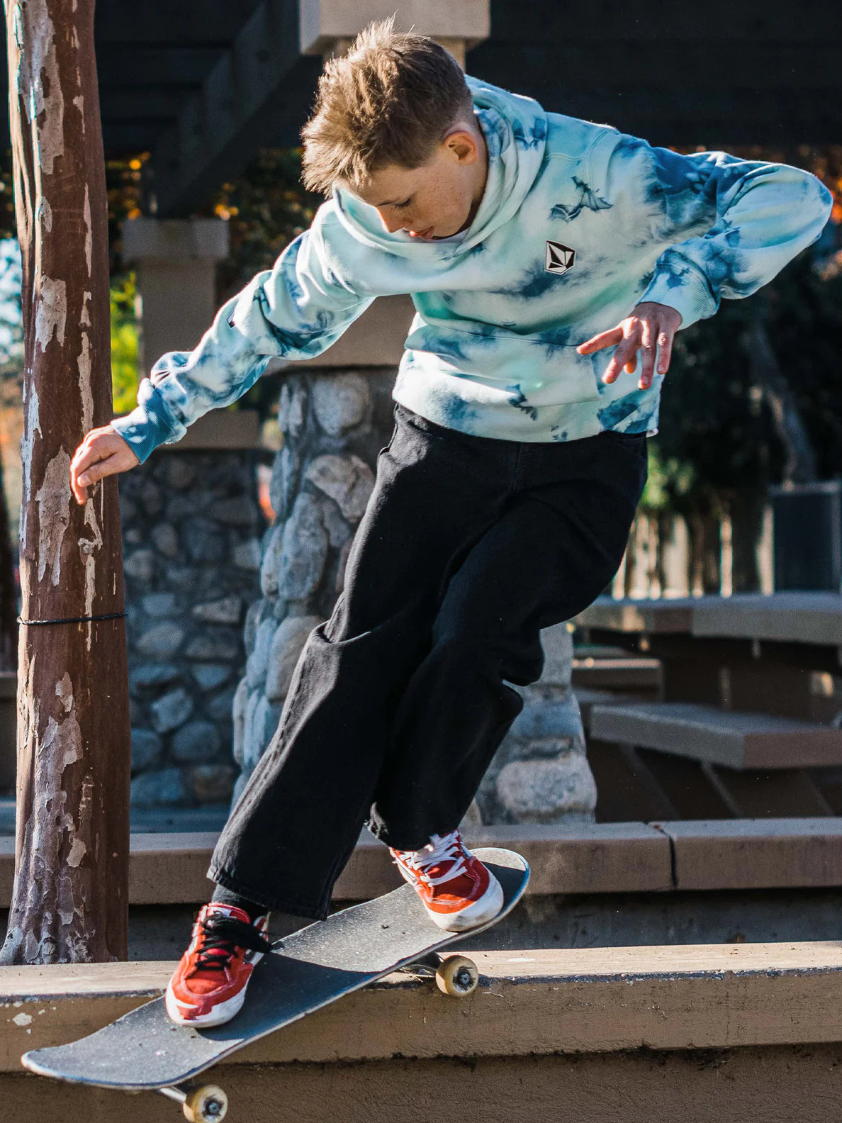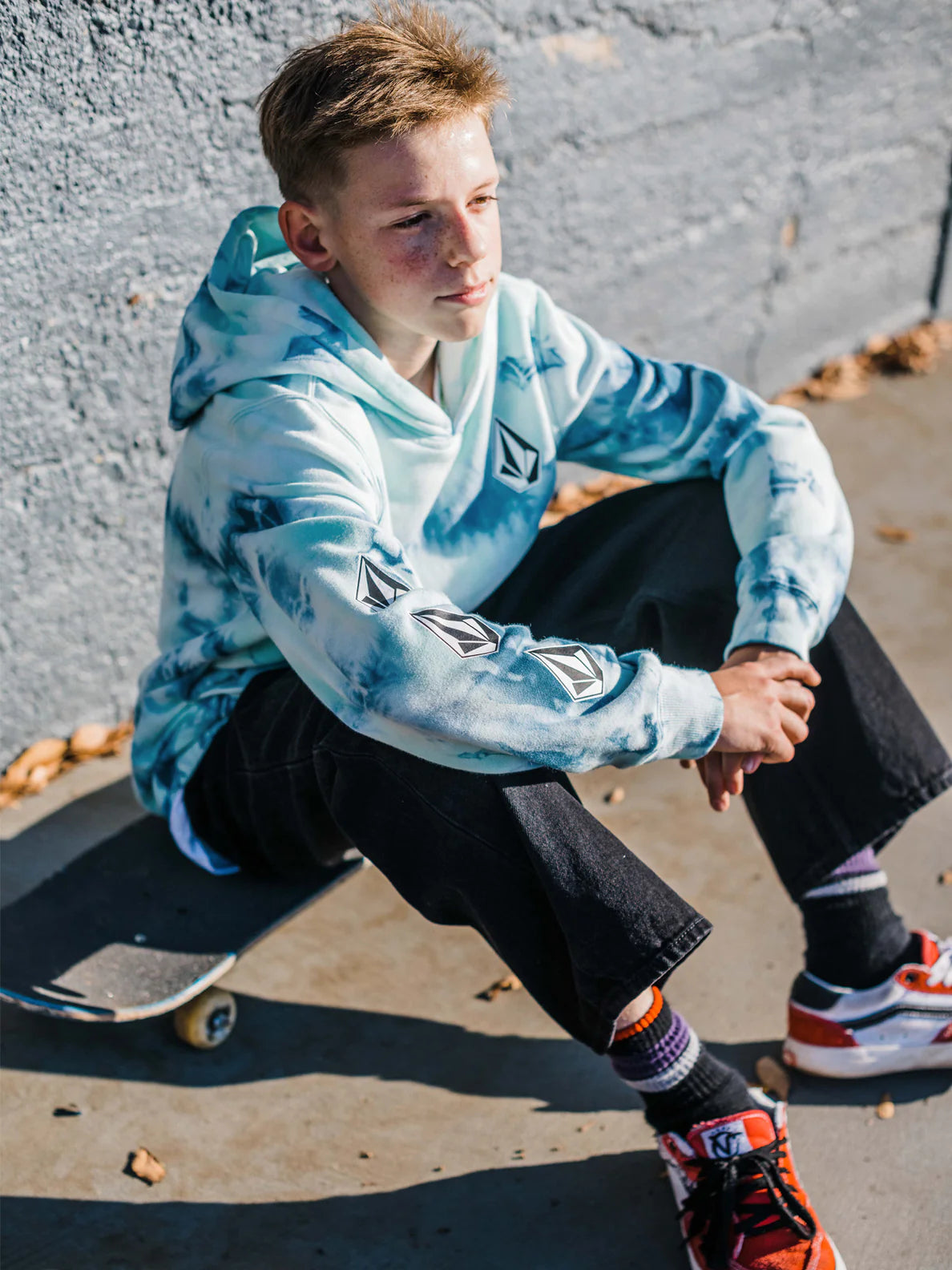 Is there anything more iconic than the combination of classic tie dye and a Volcom stone? We didn't think so. Crafted from imperviously soft cotton and recycled polyester blend fleece, he's going to love this pullover.